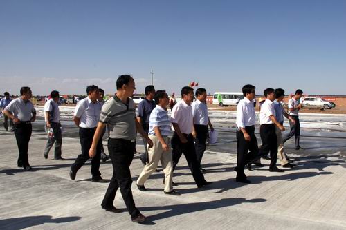 8月21日,由喬新山局長(zhǎng)率領(lǐng)的民航西北管理局工作檢查組一行蒞臨金昌機(jī)場(chǎng)飛行區(qū)施工現(xiàn)場(chǎng)檢查指導(dǎo)工作。在飛行區(qū)停機(jī)坪建設(shè)工地,在了解到公司金昌機(jī)場(chǎng)項(xiàng)目部?jī)H用了二十五個(gè)晝夜完成了總面積2.65萬平方米停機(jī)坪道面工程的情況后,對(duì)大家的辛勤勞動(dòng)給予了充分肯定,并鼓勵(lì)廣大建設(shè)者繼續(xù)鼓足干勁、克服困難,發(fā)揚(yáng)求真務(wù)實(shí)、艱苦奮斗的作風(fēng),確保工程按期完工。