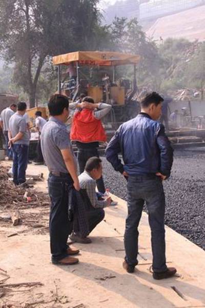 圖1—2為攤鋪機(jī)械正在跑道上進(jìn)行鋪設(shè)作業(yè)的場(chǎng)景