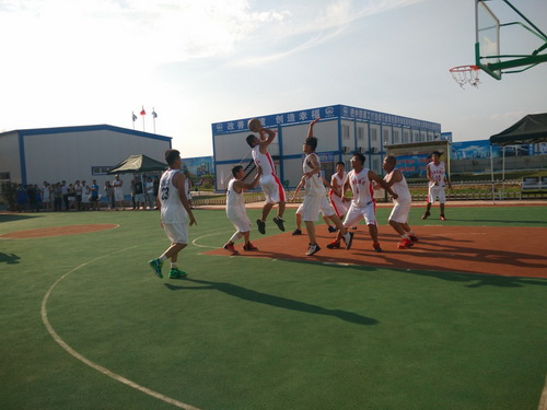 在此次的比賽中,參賽的單位有監理3標中企建發、1標中鐵十二局、4標四川場道、3標中國華西、5標上海路橋、8標中鐵航空港、10標中水十六局、6標甘肅機械化共8支籃球隊進行參賽,建設單位也派隊參加,進行友誼賽,我們跟兄弟單位中鐵航空港,上海路橋,中水十六局、四川場道一決高下,最后入圍四強,在決賽的比賽中,我們再次遇見實力強勁的中水十六局,雙方隊員在籃球比賽現場氣氛熱烈,隊員們積極進攻,嚴密防守,精彩的配合,巧妙的搶斷,不時的將比賽氣氛推向高潮。天氣雖然炎熱,但絲毫沒有影響隊員的熱情,盡管兩支球隊都是業余籃球愛好者,但他們在比賽中均表現出較好的團隊協作能力,一群年輕人激情飛揚,帶球、傳球、搶斷、上籃,賽場對抗激烈,隊員個個揮汗如雨,最后在我方隊員的努力拼搏下,以32:30的比分,贏得第一。