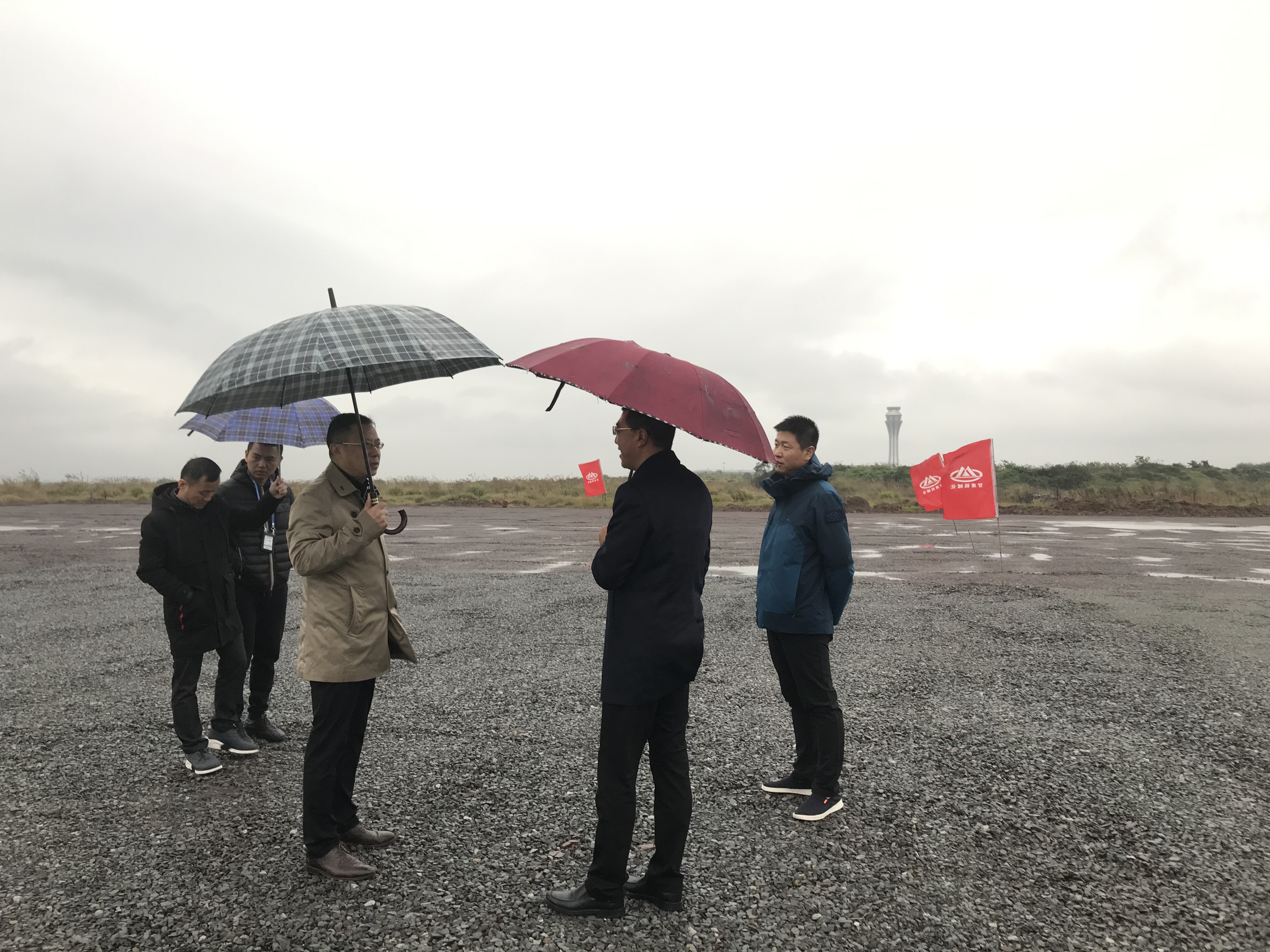 11月24日下午,伴隨著綿綿細雨,董事長陳想蕃應重慶機場集團有限公司副總經理、重慶江北機場擴建工程指揮長張明進相約,在相關負責人的陪同下,對我司承建的重慶江北國際機場凈空應急處置建設工程進行實地查看。