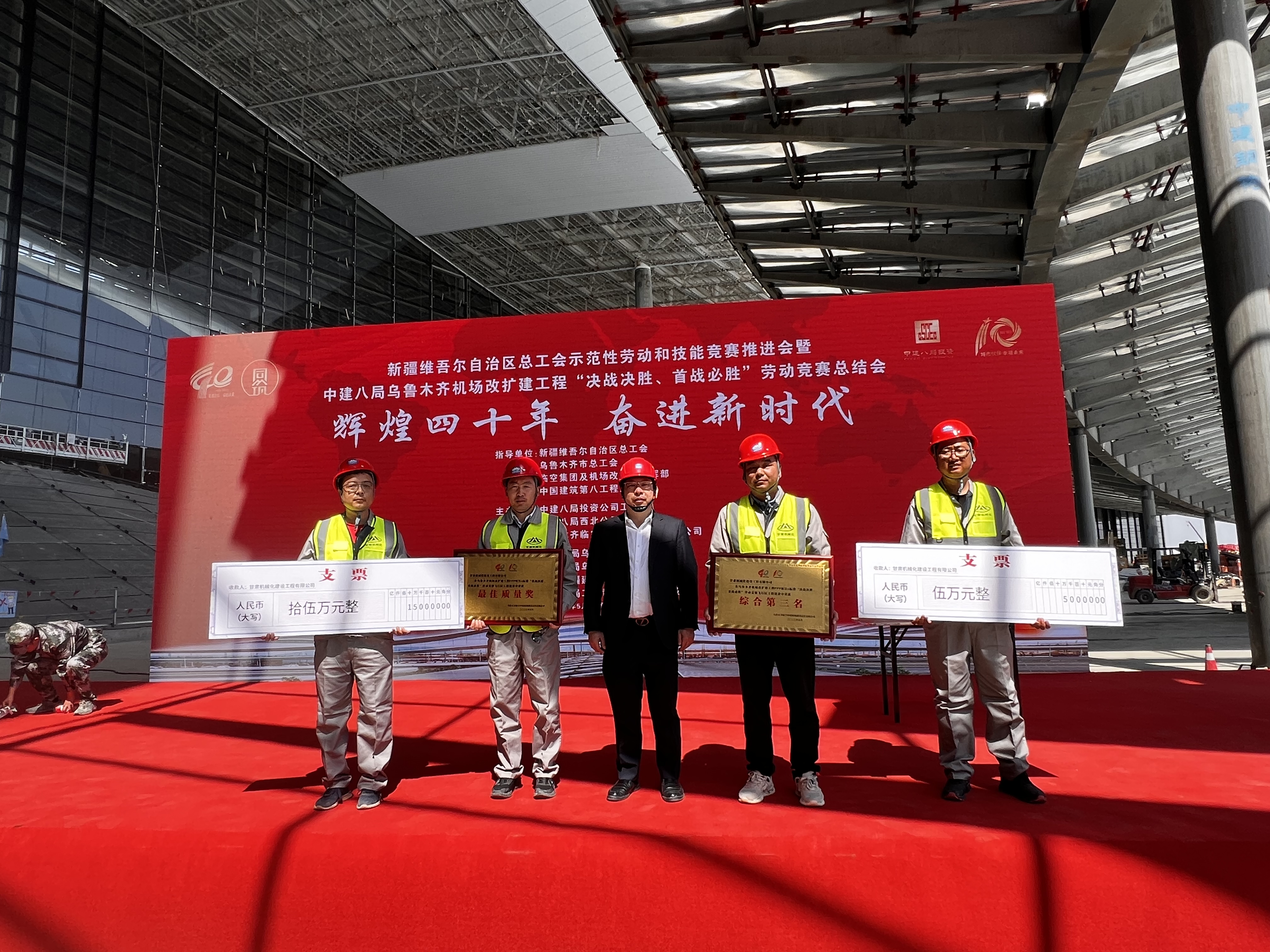 5月10日,新疆維吾爾自治區總工會示范性勞動和技能競賽推進會暨烏魯木齊機場改擴建工程“決戰決勝、首戰必勝”勞動競賽總結會上,我司烏魯木齊機場改擴建工程項目部榮獲飛行區工程建設綜合第三名及最佳質量獎;同時張振華同志榮獲“優秀共產黨員”榮譽稱號,鄧小剛同志與嚴文明同志榮獲“優秀個人”稱號!