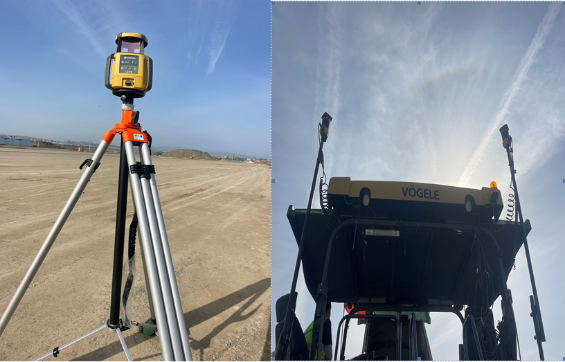 我司首次在烏魯木齊機場使用mmGPS 3D攤鋪技術,mmGPS 3D攤鋪技術是指通過衛(wèi)星全球?qū)Ш蕉ㄎ幌到y(tǒng)和激光高精度測量系統(tǒng),立體控制攤鋪的高程精度和平面精度。該技術克服了常規(guī)掛鋼線施工時掛鋼線下垂、傳感器跳動等問題,同時減少了測量放樣的工作內(nèi)容,很好地控制了結(jié)構層厚度、高程及平整度,尤其在多機聯(lián)鋪作業(yè)方式下效果明顯,實現(xiàn)了“機械化換人、自動化減人”的理念,減少了人員投入的同時減少了材料的浪費,降低了項目的安全風險,產(chǎn)生了明顯的經(jīng)濟效益。